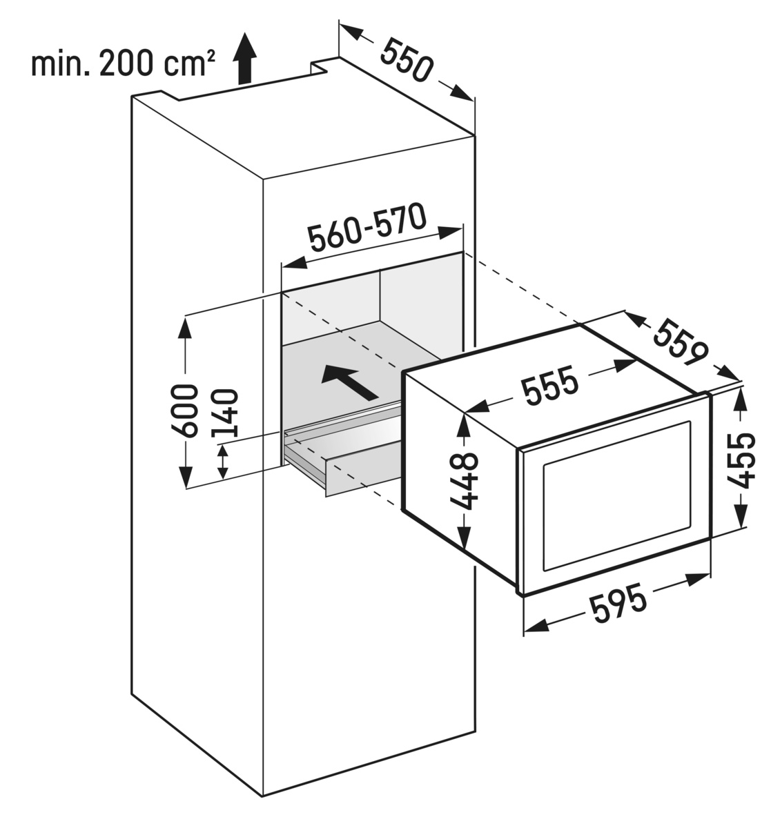 Установка встраиваемого бытового холодильника/морозильника