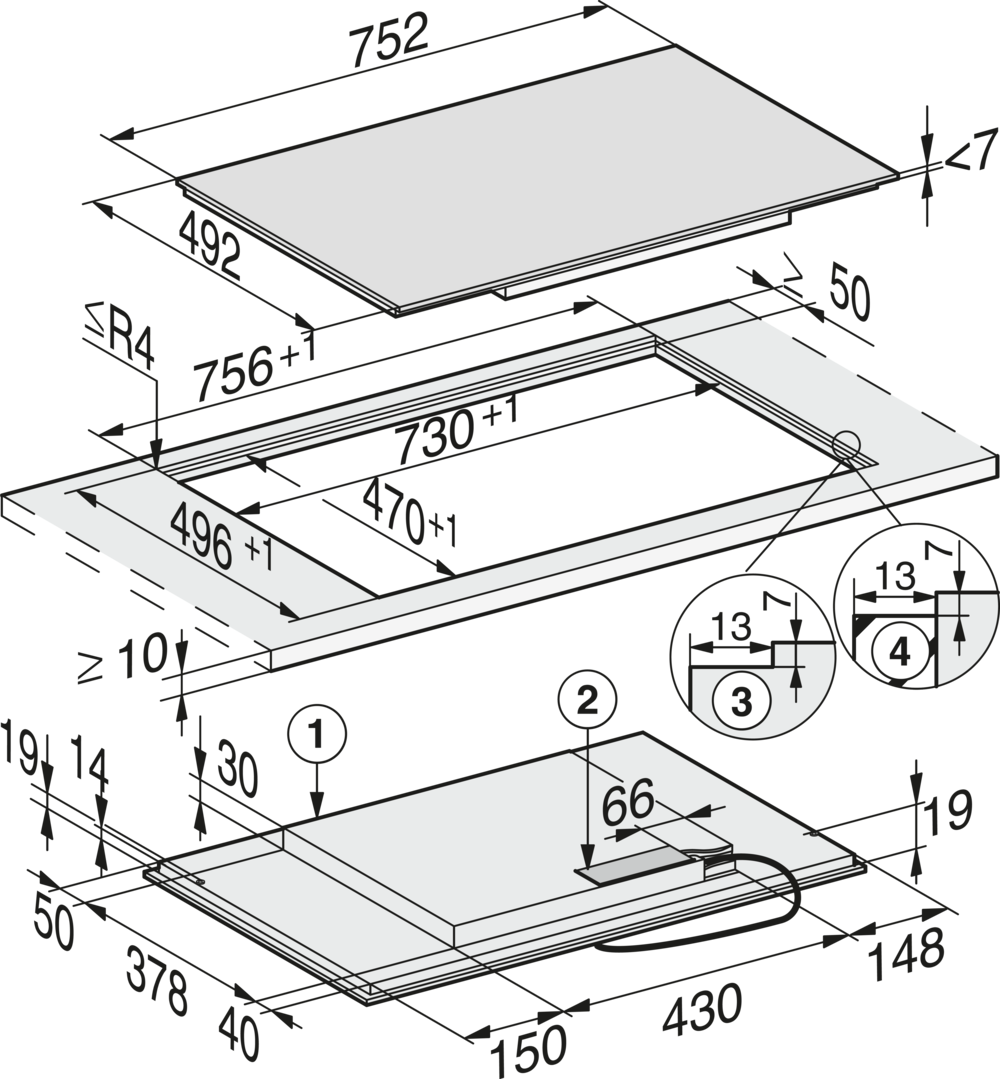 Внешние размеры выреза в мм (ширина) для встраивания заподлицо