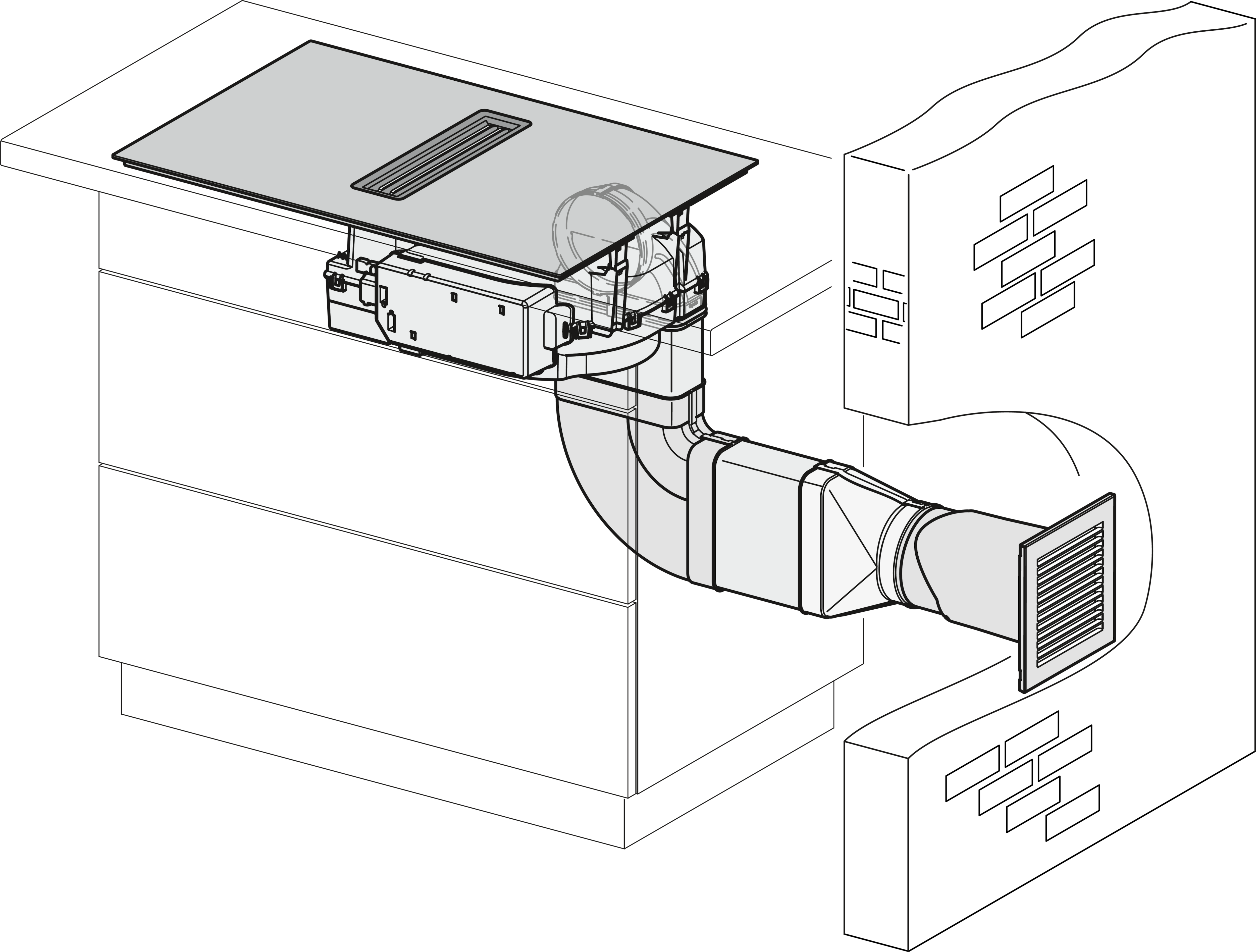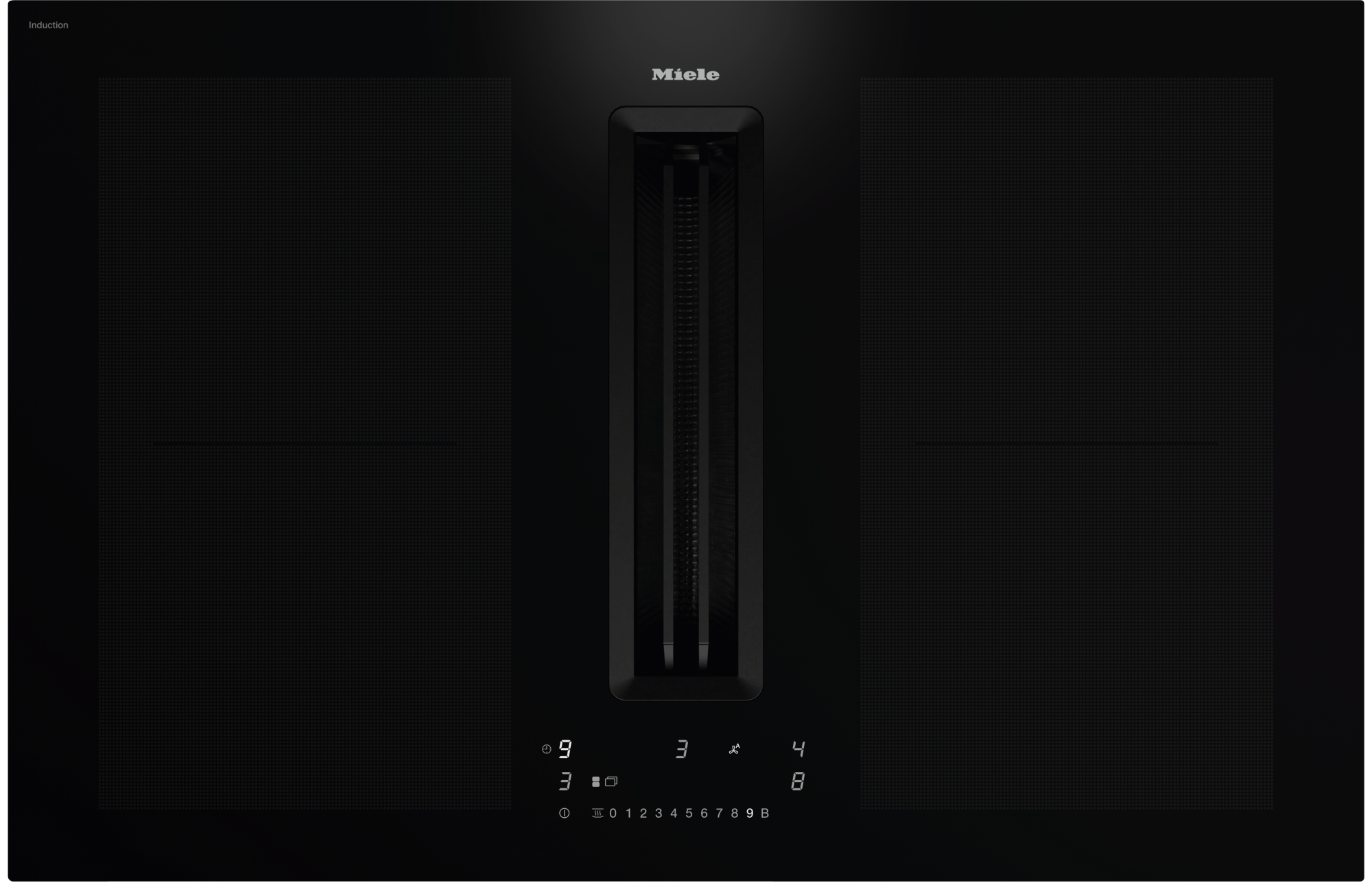 Индукционная варочная панель со встроенной вытяжкой и двумя очень большими варочными зонами PowerFlex XL для работы с вытяжным воздухом.