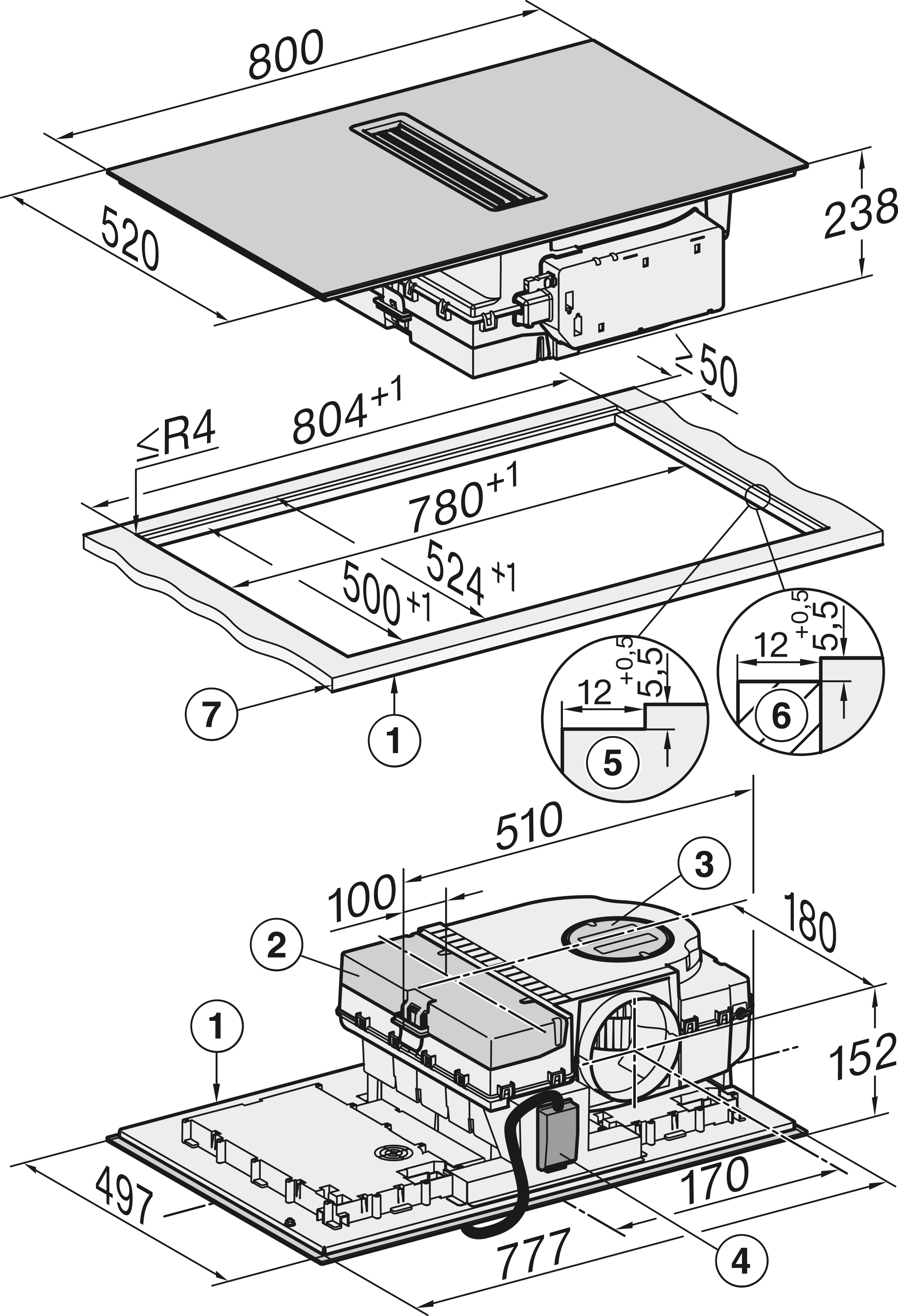• Габариты ниши (Ш*Г), заподлицо/накладной, мм: 780-804*500-524 / 780-783*500-503