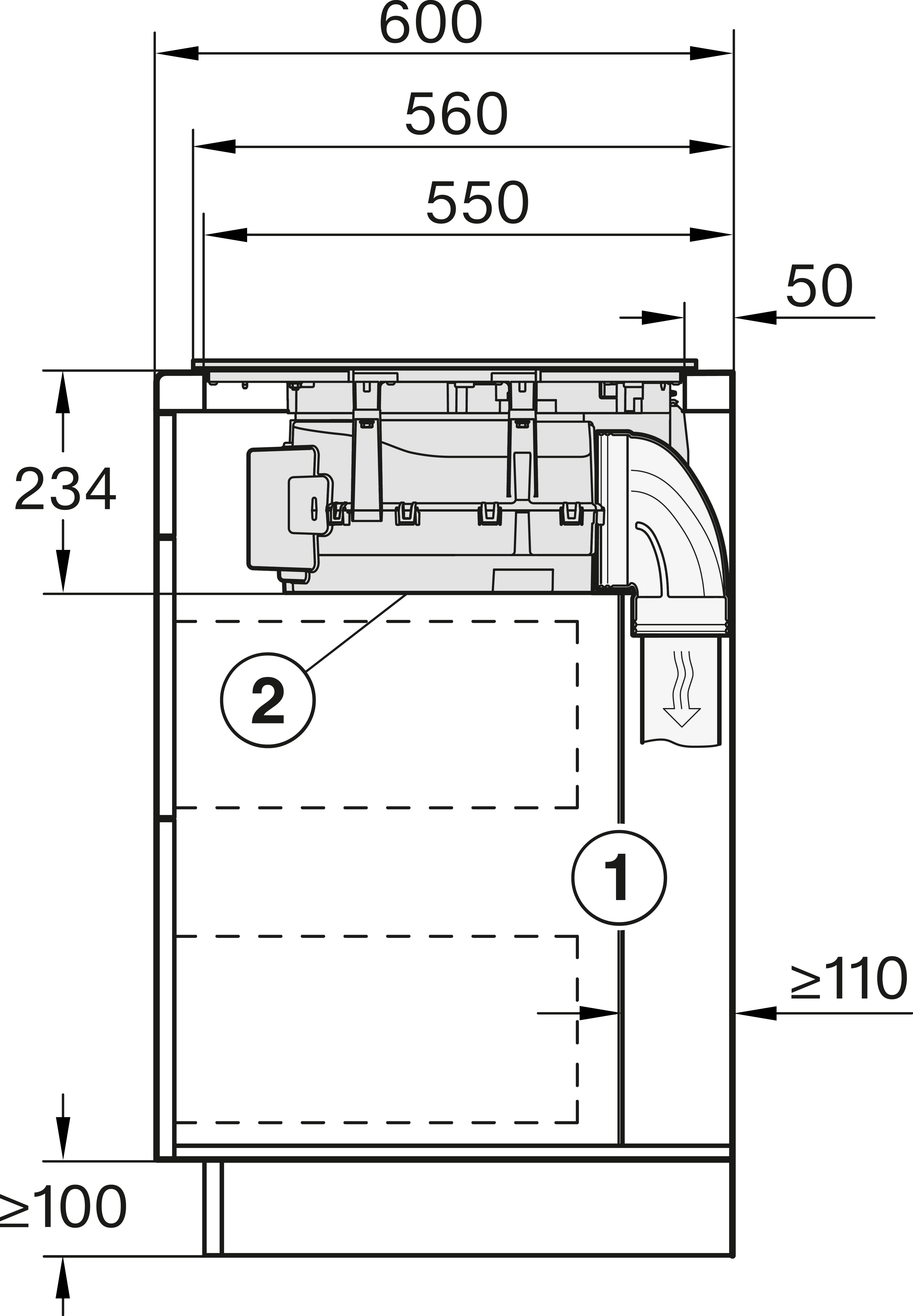 • Вытяжная мощность от/до м3/ч: 195/610
