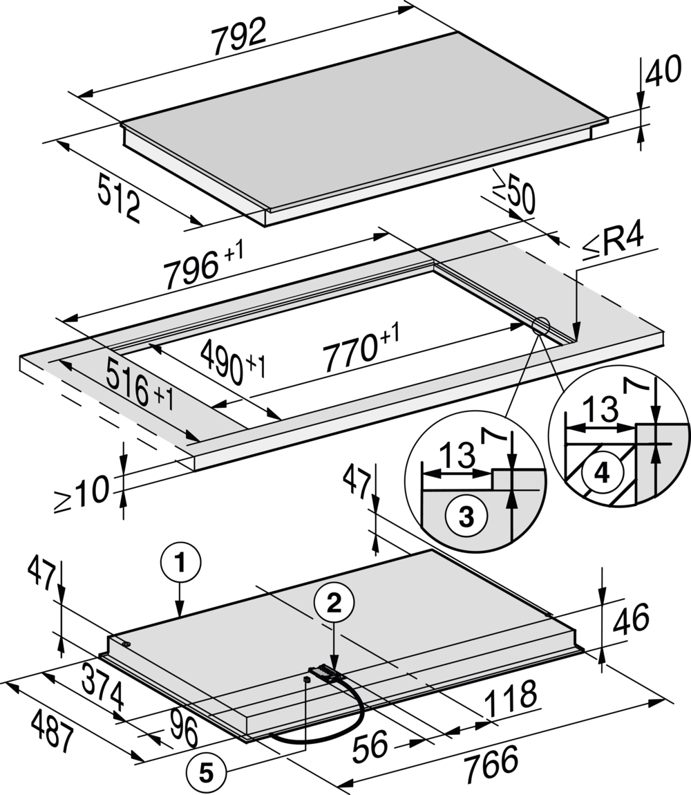 Внешние размеры выреза в мм (ширина) для встраивания заподлицо